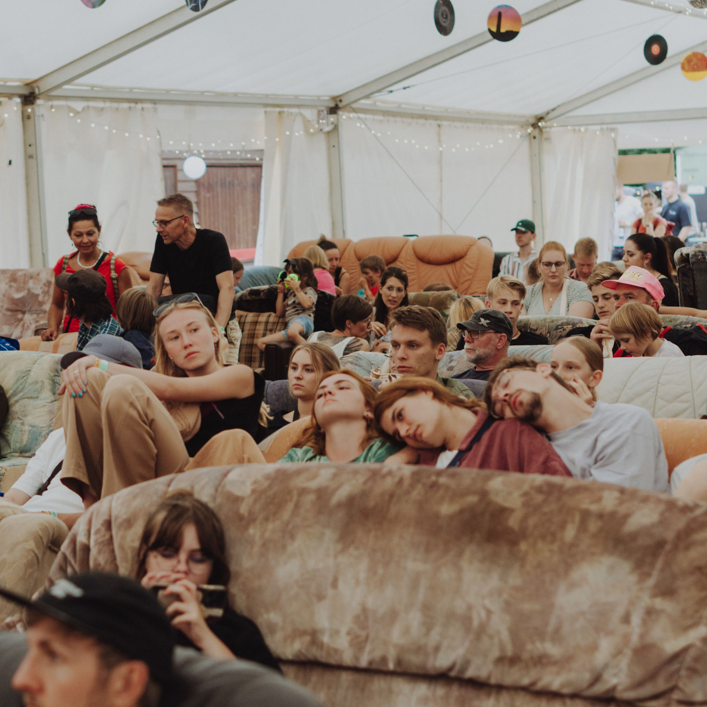 Our goal is to make the Wohnzimmer a relaxed space for everyone. As the heart of our festival, it’s a place where you can come together, chat, or simply unwind on the sofa.